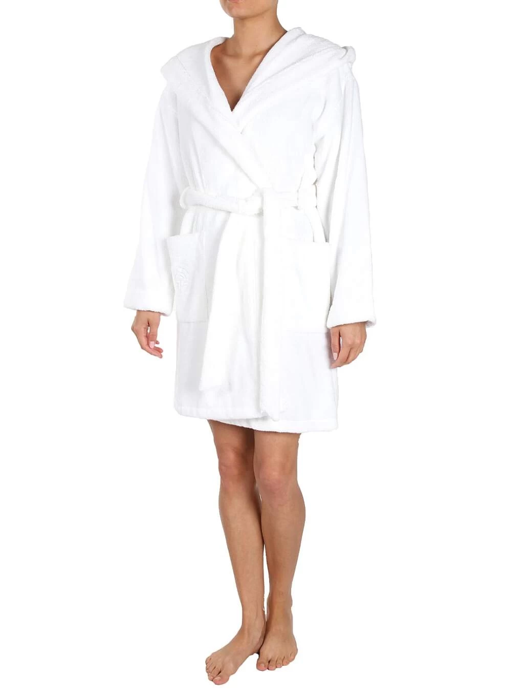 Diesen Spa-Mantel wollen sie so schnell nicht wieder ausziehen. Kuschelig weicher Baumwoll-Frottee liegt angenehm auf Ihrer Haut und sorgt für eine hohe Feuchtigkeitsaufnahme – ideal im Wellness-Hotel oder auch Zuhause nach einem entspannendem Bad. Der lockere Schnitt in Wickelform und die große Kapuze sorgen für besten Tragekomfort. Ein elegantes Extra ist das aufgestickte Féraud-Logo auf der rechten Eingrifftasche.