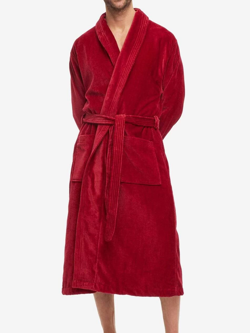 Der Bademantel Triton von Derek Rose ist ein wahrer Kundenfavorit. Das weiche Gewebe ist auf der Außenseite zurückgeschnitten, worduch ein samtiges Velour-Finish entsteht. Innen ist der Stoff in weiche Frottee-Schlaufen gelegt, welche eine ideale Feuchtigkeitsaufnahme garantieren. Fühlen Sie sich innerhalb kürzester Zeit trocken und bequem gekleidet.