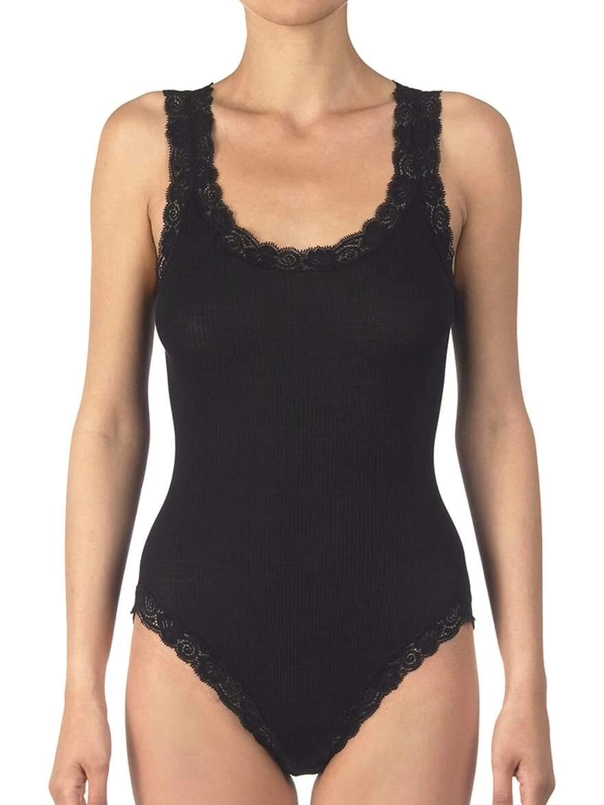 Ein Body, wahlweise in creme oder schwarz in perfekter Passform, aus der Serie Wool & Silk der Luxusmarke Oscalito – Unterwäsche für Damen. Feine, zarte Optik, und schlichte Eleganz vereinen sich zu purem Luxus auf der Haut. Feinste Wolle und Seide in opulenter Rippe, verarbeitet zu behaglichem Gewebe verleiht dem Kleidungsstück einen weichen Griff. Ein Body mit rundem Ausschnitt mit Spitzenverzierung welches höchsten Ansprüchen an Bequemlichkeit gerecht wird.