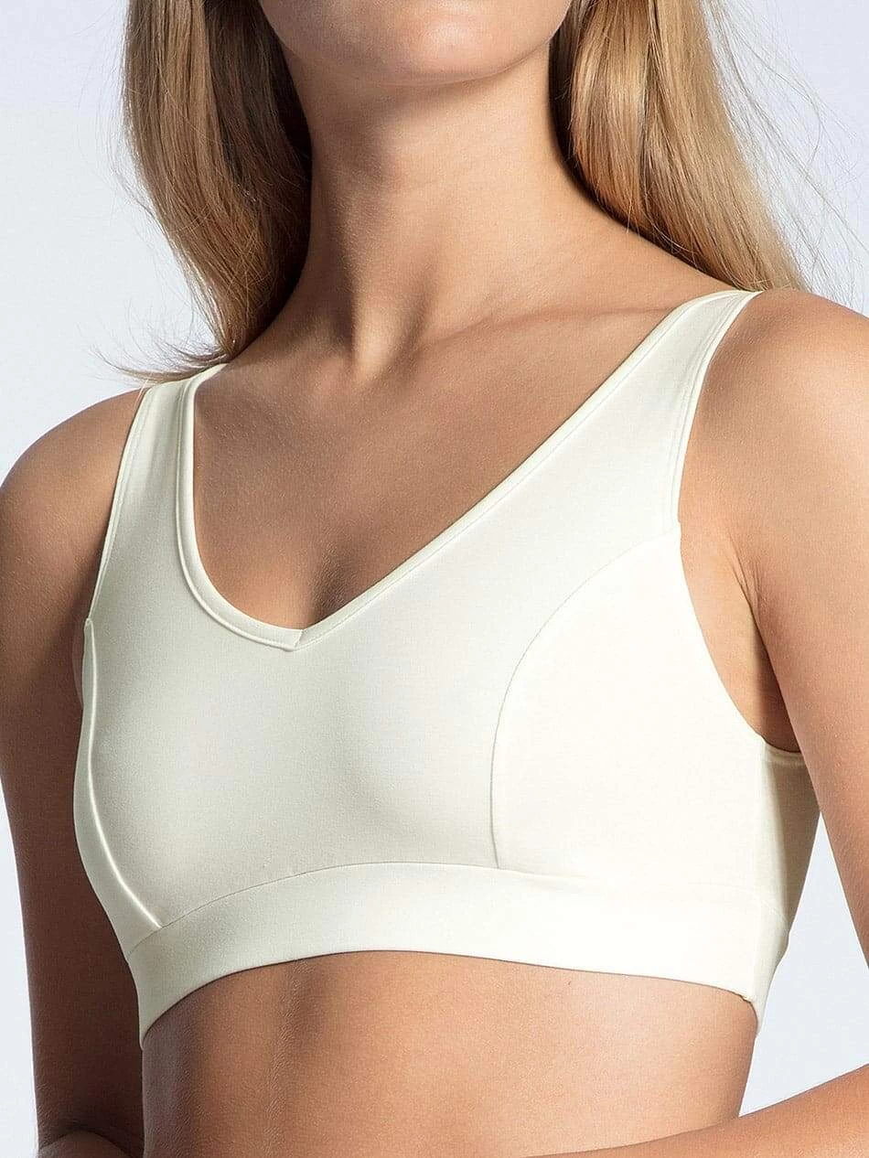 Aus der CALIDA Damenlingerie Serie 100% Natural ein bequemes Bustier ohne Bügel für einen eleganten Auftritt in zartem creme Ton. Dieses Bustier zeichnet eine klare Schnittführung aus. Die erstklassige Verarbeitung und ein weiches, rückstandsfrei kompostierbares Lyocell Single Jersey Gewebe machen dieses Bustier nicht nur in seiner Optik unfehlbar. Kombinieren Sie den passenden Slip aus der neuen 100% Nature Serie passend dazu.
