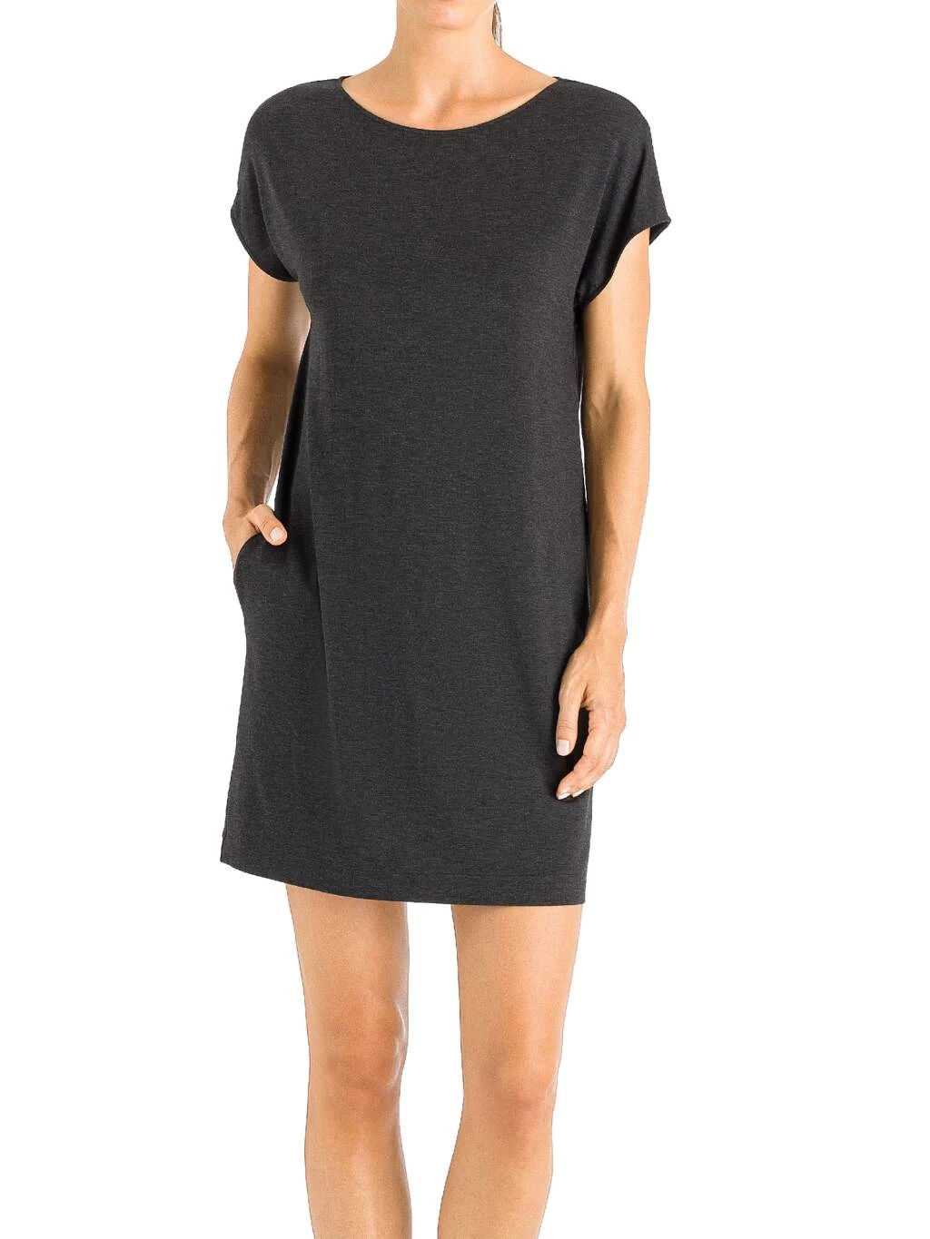 Das kurzärmlige Nachthemd aus der Serie Natural Elegance von HANRO of Switzerland beeindruckt mit einer modernen, sehr lässigen Schnittführung. So schmeichelt das 90 cm lange Wäschestück für die Nacht der weiblichen Figur und beschert dank weicher, fließender Viskose-Melange mit Elasthan einen hervorragenden Tragekomfort. Modische Taschen komplettieren den modernen Look zum Schlafen und Relaxen. Auch in dieser Saison erwartet Sie das beliebte Nachthemd in limitierten Trendfarben.