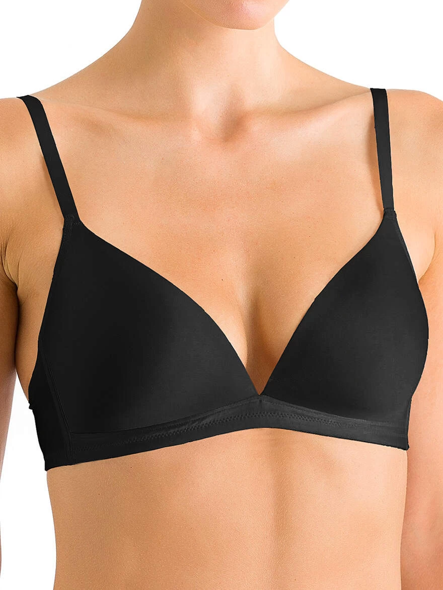 Edler Softschalen-BH mit gepaddeten Cups aus der HANRO Serie Satin Deluxe. Die soft gepaddete Cups ohne Bügel formen sanft, geben Halt und tragen sich wunderbar angenehm auf der Haut. Der dezent glänzende Satin besteht aus einer besonders weichen Viskose mit geringem Elasthananteil. Mit den längenverstellbaren Trägern kann der Soft-BH individuell angepasst werden.
