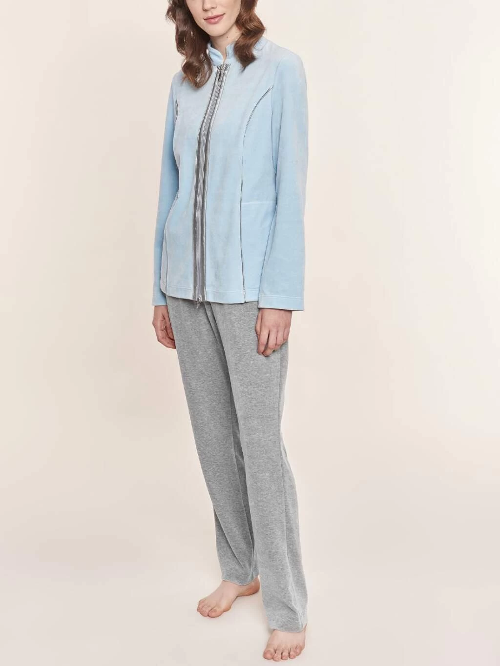 Der stilvolle Hausanzug aus weicher Nickiware verspricht pure Gemütlichkeit. Der weiche Stoff liegt angenehm wärmend auf der Haut. Das moderne Design mit farblich abgehobender Reßverschlussleiste und figurschmeichelnden Teilungsnähten sorgt für Abwechslung im Kleiderschrank. Praktische Eingrifftaschen finden sich sowohl am Ober- als auch am Unteriel des Anzugs. Ein abgerundeter Stehkragen vollendet den komfortablen Look.