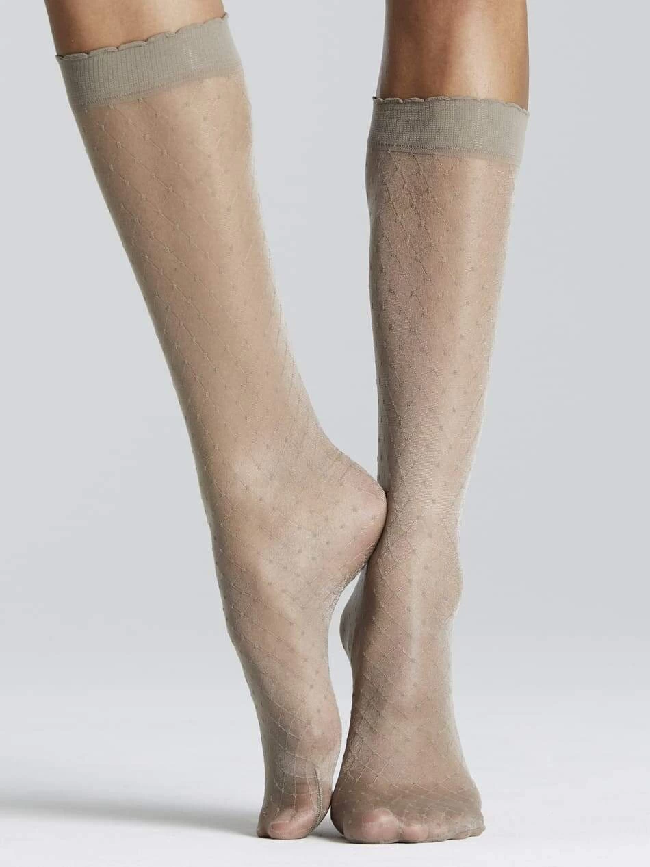 Fogal Damen Kniestrumpf mit Pünktchenmuster. Der Knee-High besticht mit leichtem Glanz und hoher Elastizität. Das klassische Pünktchen-Allover ist unterlegt mit einem feinen Rautenmuster. Modell mit Charme: anmutig-eleganter Look für jeden Anlass.