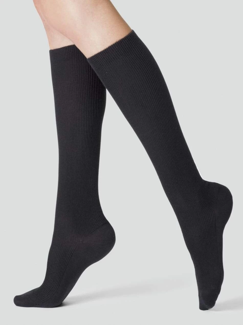 Fogal Kniestrumpf für Damen aus der Serie 3060 Precieuse. Durch die Verarbeitung von temperaturausgleichendem Garn sind diese ein optimaler Winterbegleiter. Die unregelmäßige Rippenstruktur verleiht diesen blickdichten Kniestrümpfen einen legeren Look. Das zarte Bündchen und die edle Farbe, schwarz, wirken zugleich sehr feminin.