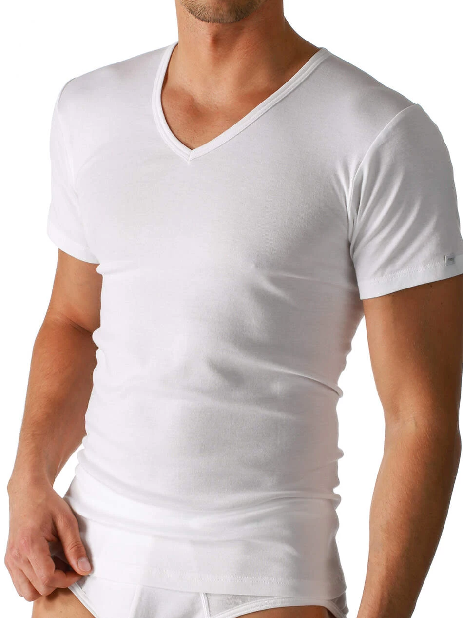 Mey Herren V-Shirt – Mey Noblesse. Verwöhnen Sie sich mit diesem Wäschestück mit V-Ausschnitt. Das Kurzarm Shirt, erhältlich in weiß, wird aus reiner, supergekämmter PIMA Baumwolle in klassischem Feinripp gefertigt. Die Mey Noblesse Serie trägt das Bluesign Label für besondere Nachhaltigkeit während des gesamten Fertigungsprozesses.
