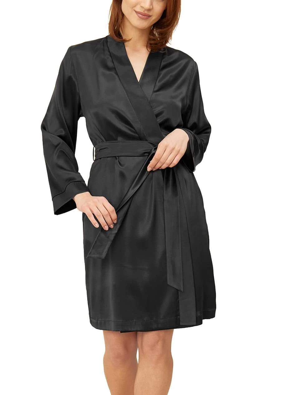Für einen eleganten Auftritt zu jeder Tageszeit sorgt der Wickelmantel von Féraud aus luxuriöser Seide. Diese ist aus biologischer Herkunft und GOTS-zertifiziert. Der klassische Schnitt mit Schalkragen und Eingrifftaschen wird durch das dezente Bindeband mit Schlaufen abgerundet. Seien Sie sich einem außergewöhnlich glattem und fließendem Tragegefühl gewiss. Für ein angenehm flexibles Gewebe sorgt zudem ein Hauch Elasthan. Der Mantel ist circa 95cm lang, ein aufgesticktes Logodetail am Ärmel zeugt von Liebe zum Detail.